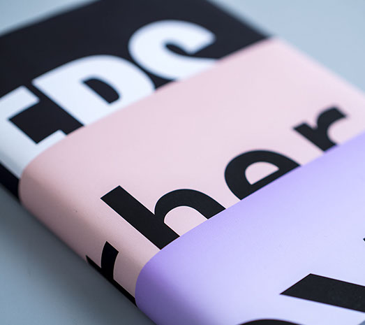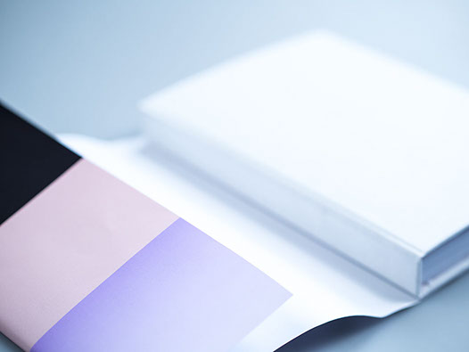 The dust jacket is also the poster for my bachelor project. The main cover is white with a blind embossment. The book is bound as a Swiss Brochure and has a bag in the inside which offers space for the postcards and the poster I made for the project.
