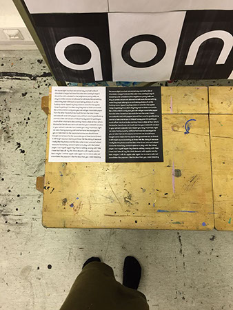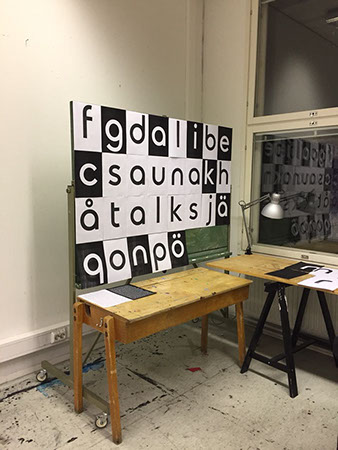 As part of the residency we presented our projects at an open studio night. I covered my working space with the Sauna Talks font.